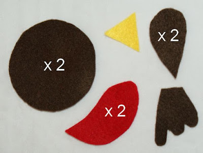 Place the two circles of wadding between the front and the back. Pin on the beak and tail ...